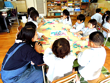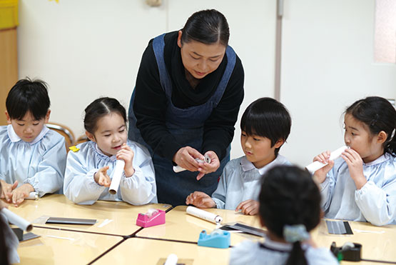 いろいろな材料を使って多方面からとらえ、立体的に表現する力を育てます。