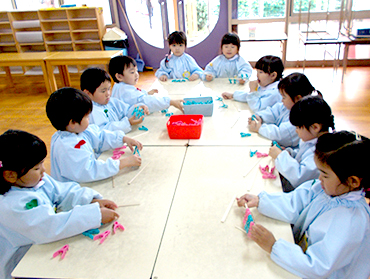 木や粘土に触れ、好きな作品をつくることにより、自由な発想と個性豊かな創造力を育てます。